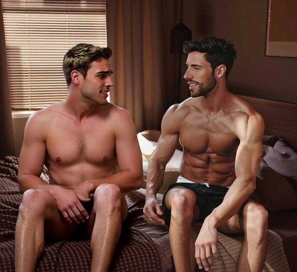 Once we arrived, I quickly and confidently pressed him down against his bed with my powerful arms.